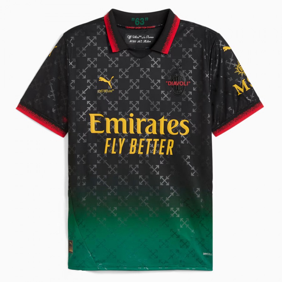 Maglia da calcio AC Milan x OFF-WHITE per adulti nera e verde acqua 2024