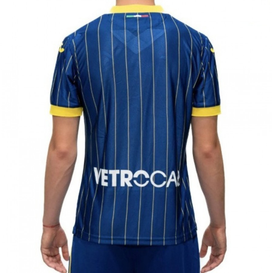 Replica della prima divisa dell'Hellas Verona FC. Stagione 2024/2025, modello maschile. I tifosi gialloblù continueranno a indossare i loro colori rappresentativi: il blu e il giallo per sostenere il loro club. Per l'occasione, è stata aggiunta un'elegante stampa sublimatica a righe gialle. Nella parte interna del collo, è stata aggiunta una scritta per commemorare il 40° anniversario del loro primo e unico scudetto, con cui sono diventati campioni d'Italia: "GLI UNICI NELLA STORIA CAMPIONI D'ITALIA 1984/1985".