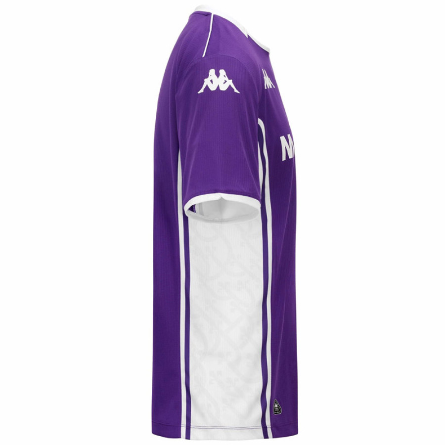 La maglia Home da uomo della Fiorentina per la stagione 2025/26, sviluppata in collaborazione con il partner tecnico Kappa. La maglia Home Kappa KOMBAT Pro rappresenta l'ultima aggiunta alla collezione di kit del club italiano, progettata per fungere da divisa principale per la prossima stagione in diverse competizioni. La divisa Home della Fiorentina 2025/26 trae significativa ispirazione dalla ricca storia del club, rendendo in particolare omaggio alla memorabile maglia della stagione 1999/2000. Il design incorpora una sofisticata grafica laterale tono su tono che esalta l'iconico simbolo del Giglio del club, creando un motivo distintivo che celebra la tradizione della Fiorentina. Questo legame storico rafforza l'identità del club presentando al contempo un'interpretazione contemporanea di elementi di design classici.