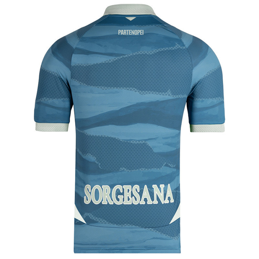 Ispirata alle origini di Napoli, la nuova divisa SSC Napoli incarna il concetto di armonia tra la squadra di calcio, la cultura cittadina e il mare, che vivono in perfetta simbiosi. La maglia da gara del Partenope presenta un tessuto con texture jacquard abbinato alla stampa sublimatica.