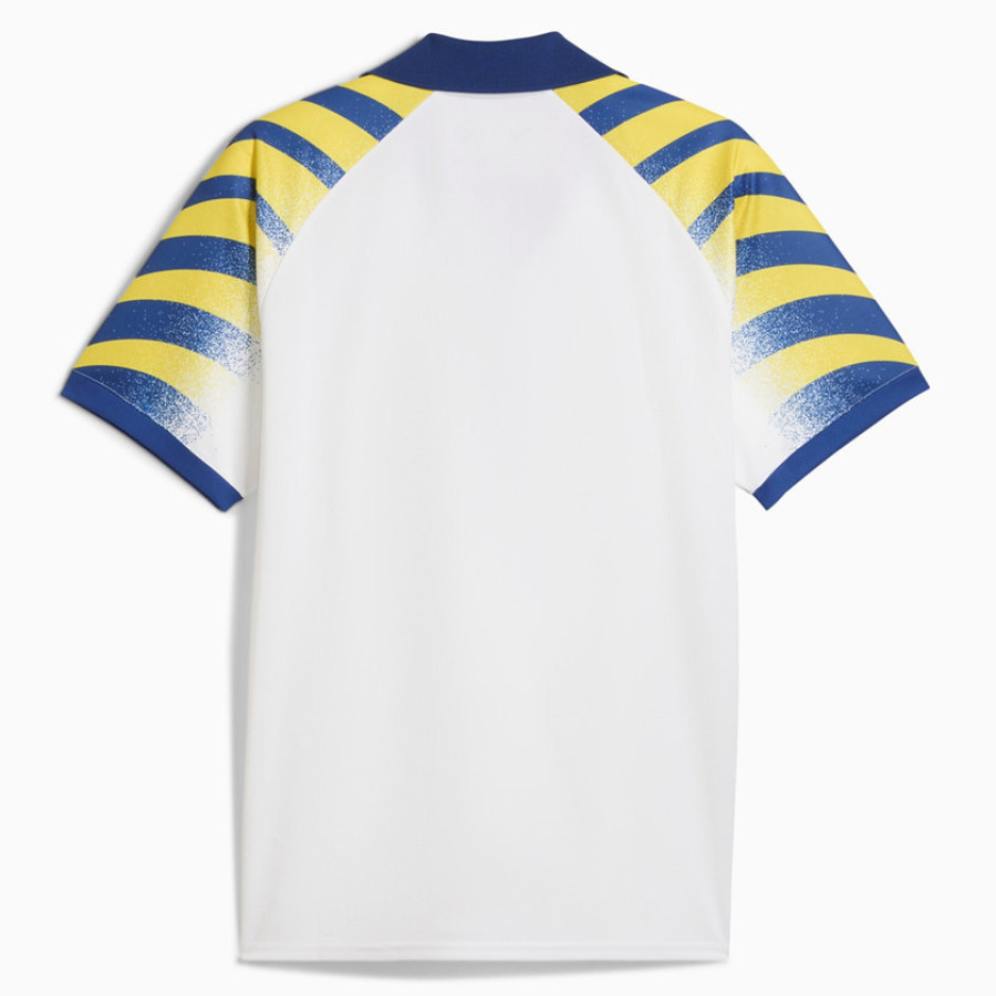 Scopri la vera passione per il calcio con la nuova terza maglia del Parma per la stagione 2025-2026! Pensata appositamente per i tifosi più fedeli, questa maglia Puma presenta una base bianca essenziale, impreziosita da accattivanti cerchi blu e gialli sulle maniche. Queste strisce sono applicate con un effetto vernice spray, creando un look dinamico e moderno, pur rimanendo fedeli ai colori iconici del club.