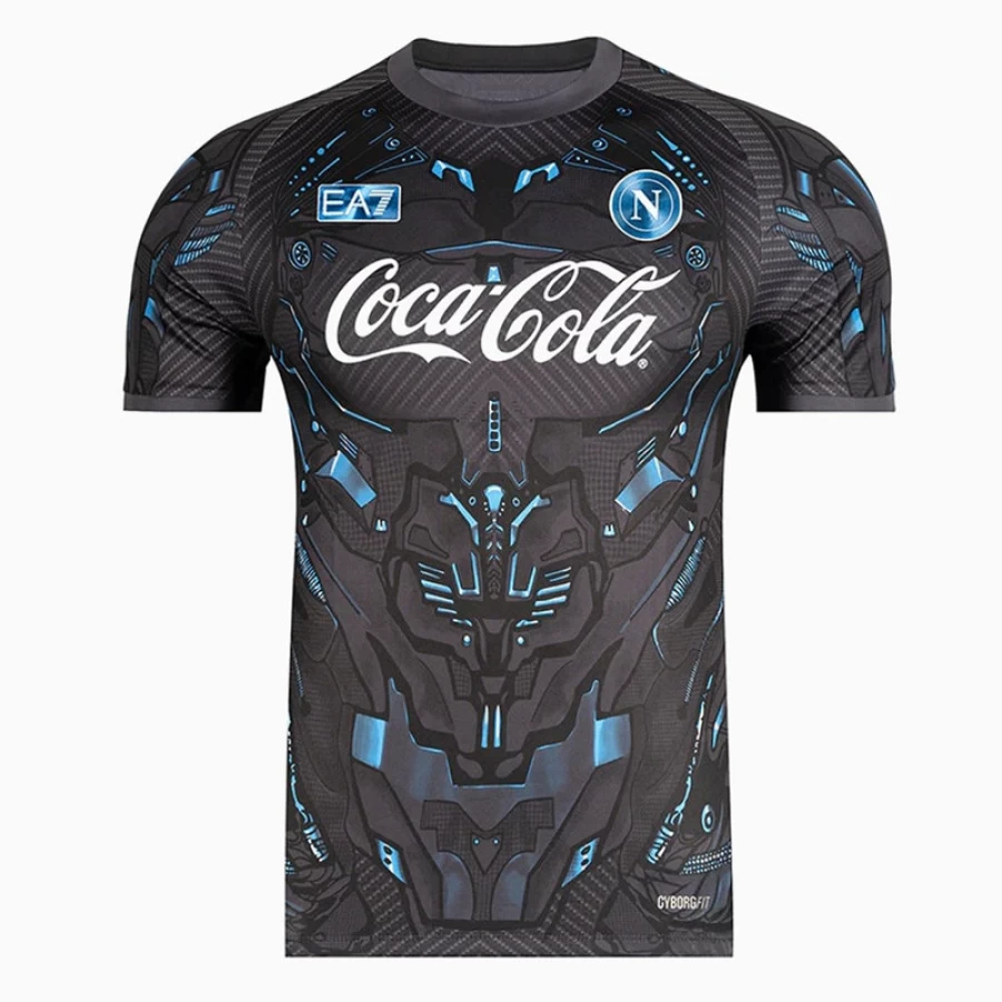 Sul davanti sono cuciti con orgoglio i loghi SSC Napoli ed EA7, insieme al logo Coca-Cola. Ideale per l'allenamento, la maglia segna una nuova frontiera nell'abbigliamento sportivo: performante, distintiva e tecnologica.